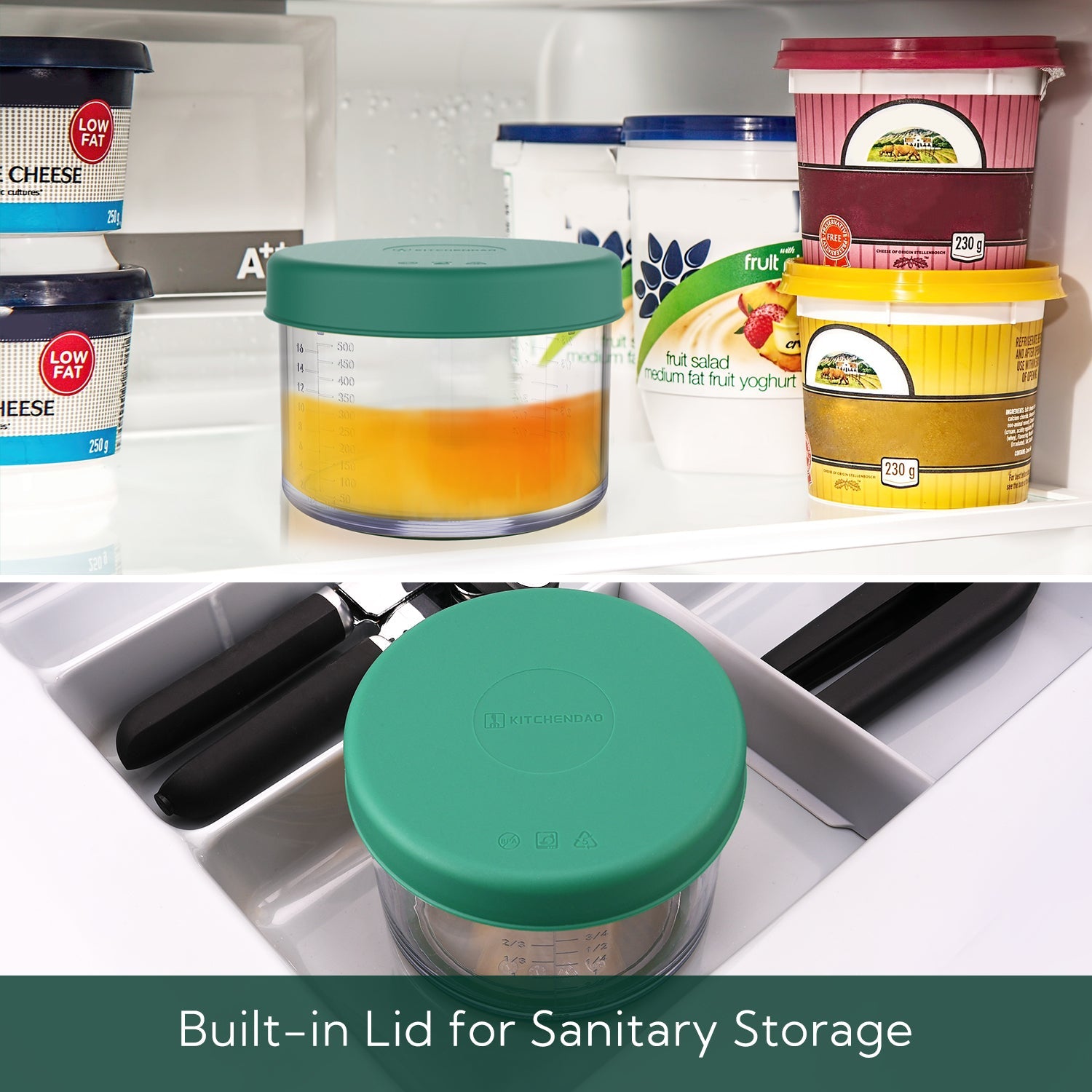 2 in 1 Lemon Orange Citrus Juicer with lid for Sanitary Storage, Manual Hand Squeezer with Built-in 16OZ Measuring Cup, Multi-function Manual Juicer with Reamers and Non-Slip Base, BPA Free