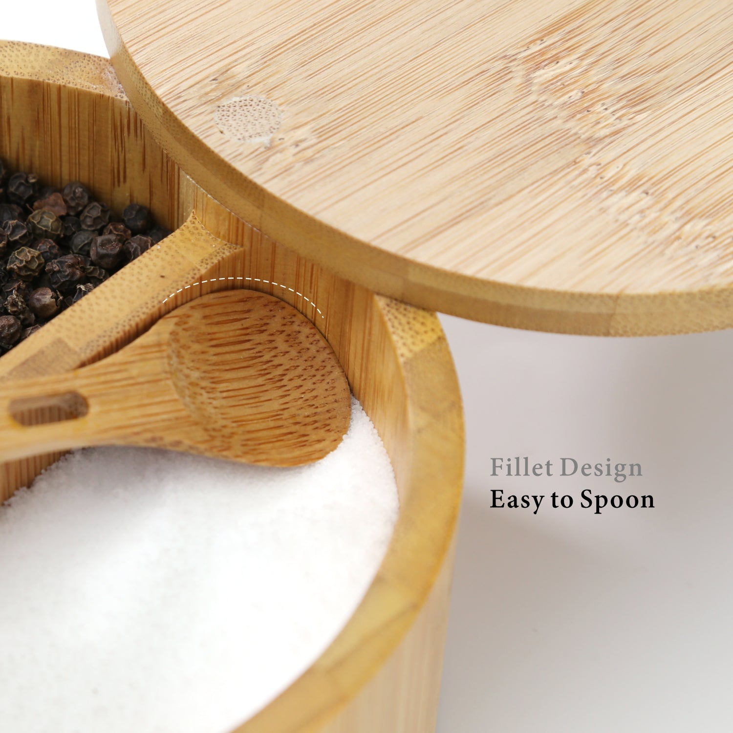 Built-in Serving Spoon Bamboo Salt And Pepper Box With Magnetic Swivel Lid